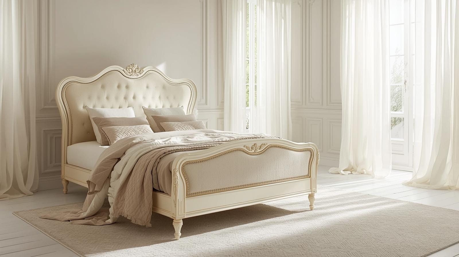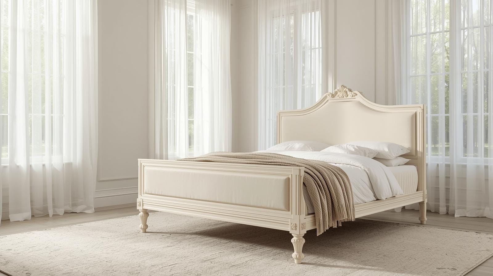 Giường tân cổ điển màu trắng kem hoặc bọc nhung.