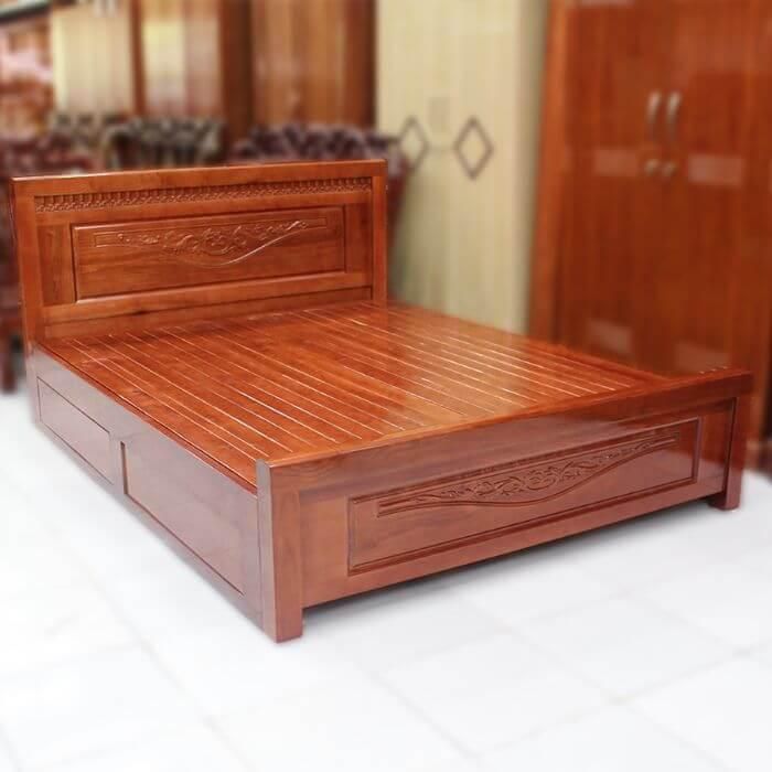 Ngoài ra, nhiều mẫu giường gỗ hương còn được tích hợp thêm các tiện ích như ngăn kéo lưu trữ bên dưới, giúp tối ưu không gian sử dụng. Đây là giải pháp phù hợp với những phòng ngủ có diện tích hạn chế nhưng vẫn muốn đảm bảo công năng và tính thẩm mỹ.