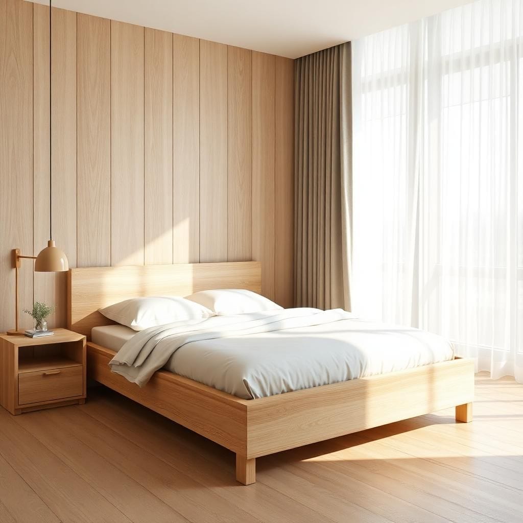 Màu sắc: Chọn giường tông sáng (trắng, be, gỗ sáng) để dễ kết hợp với tủ, bàn trang điểm.