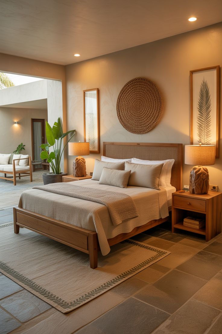 Trước tiên là chất liệu gỗ. Gỗ tự nhiên luôn là lựa chọn ưu tiên vì mang nguồn năng lượng ổn định, không gây cảm giác lạnh lẽo như kim loại hay bí bách như một số vật liệu nhân tạo. Gỗ còn có khả năng điều hòa không khí, tạo cảm giác dễ chịu cho không gian phòng ngủ.