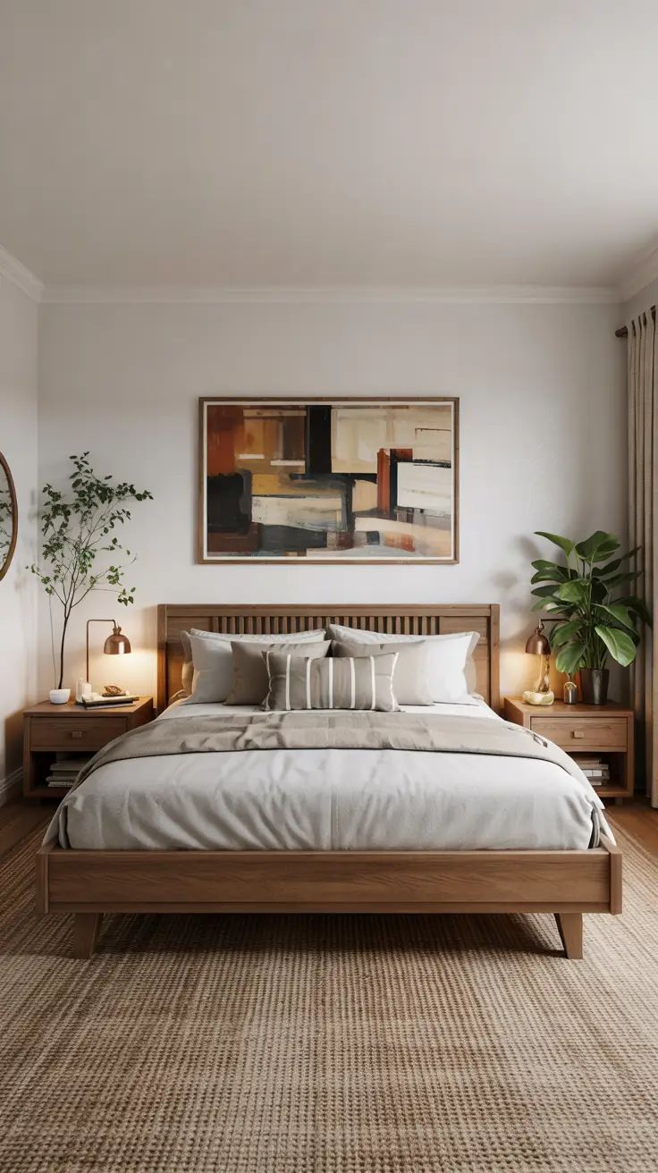 Cuối cùng, có thể kết hợp thêm các vật phẩm phong thủy như đèn ngủ ánh sáng ấm, cây xanh nhỏ hoặc tinh dầu thiên nhiên để tăng cường năng lượng tích cực cho phòng ngủ.